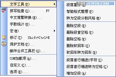 在目前 WPS文字 的新版本中对原有的功能进行了全面地优化和改进,用户通过:选择“工具|文字工具”可以看到以下菜单,如图 1中右侧子菜单所示: