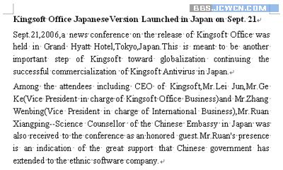 另外,用户希望将网页上的某些英文文章保存下来,以便于平时阅读,如果复制的文章中包含有多个连续空格(或者由于用户在编写英文文档时误输入了多个连续空格),如图 4所示,用户如果想利用常规的方法(如查找替换)整理这样的文章就显得力不从心了。