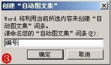 先将特殊符号输入到文档中,然后选中该特殊符号,执行“插入→自动图文集→新建”命令,打开“创建‘自动图文集’”对话框(如图3),输入一个名称(如“编号”等),确定返回。以后需要输入该特殊符号时,只要执行“插入→自动图文集→正文→编号”即可。
