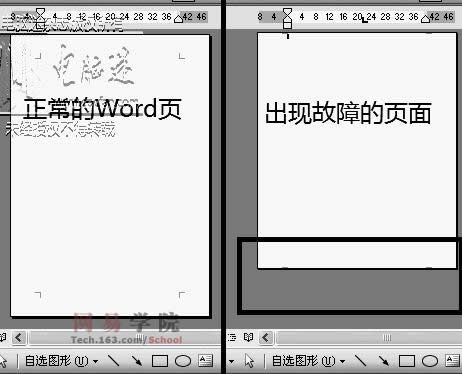经过认真分析,终于找到了原因。说起来也搞笑,引起该“故障”的元凶竟是Word一个十分有用的功能--“隐藏空白/显示空白”,只不过该功能很少有人知道罢了。当我们阅读大文档时,页面之间的空白不但影响页面的视觉效果,而且会降低浏览的效率。这时“隐藏空白”就排上了用场,将鼠标移动到上方边缘处或者是下方边缘处,鼠标会变成一个双箭头,同时显示“隐藏空白”的提示,单击鼠标即可将页面前后的空白隐藏起来,从而提高阅读大文档的效率。而在编辑时,为体现所见即所得的效果,我们会需要Word显示出空白区域,再次将鼠标移动到上方边缘处或者是下方边缘处,鼠标变成一个双箭头时,会同时显示“显示空白”的提示,单击即可重新显示空白区域。