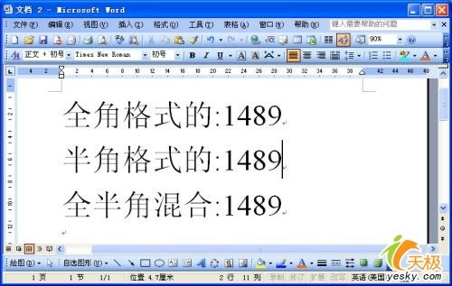 3、选中“半角”选项,确定返回,转换完成(如图3)。