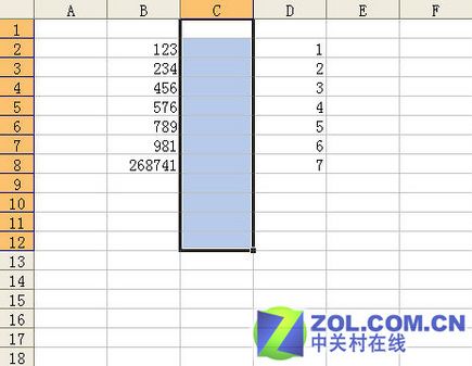 例如:要将B列中每个单元格中的数据后面都加上固定数字“0000”,可以进行操作:选中C列,单击鼠标右键,从快捷菜单中选择“插入”命令,在B列后插入一空白列,如图4所示。