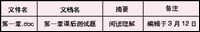比如刚刚输入了一份课后测试题,文件取名为“第一章。doc”。现在,我们新建一个Word文档,作为检索该文件的索引文件,该索引文件为一个四列表格,各列分别为文件名、文档名、摘要、备注(请见附图)。