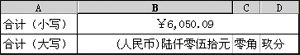 确认后B2显示:“(人民币)陆仟零伍拾元零玖分”。以后使用时将公式复制到有关单元格中,若转换的对象B1发生了变化,可点击“编辑→替换”将B1替换掉。两种转换测试结果如图2所示。
