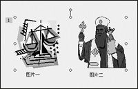 在PowerPoint的同一张幻灯片中插入两幅图片,调整好它们的大小及位置关系,按住Shift键将这两幅图片同时选定,右击鼠标,从弹出的快捷菜单中选择“组合”菜单中“组合”命令,此时,原本插入的两个图片对象就被组合为一个图片对象了,然后再设置其相应的动作就可以了。设置完动作后,我们可以看到,在被组合对象的左上角只出现动作顺序“1”(如图),事实上我们预览时也能观察到这两幅图片是同时动作的,但大家要注意,设置动作时尽量不要使用从“自左侧”、“自右侧”等动作效果,最好选择“左右向中央”的动作效果。
