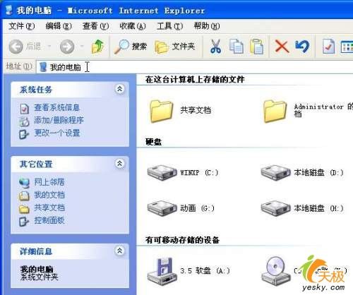 在IE地址栏中输入“盘符:\文件夹名\文件夹名……”,盘符就是我们常说的C盘、D盘、E盘……),文件夹名是指你准备打开的“文件夹”,冒号和向右的斜杠没啥说道,但字母和符号要在英文状态下输入,字母大小写都行。如输入E:\