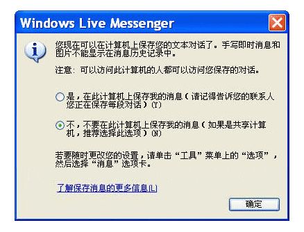 当您第一次在一台机器上使用Messenger 时,系统会让您选择是否保存您的聊天记录。如果您使用的是一台公共计算机,我们建议您选择不保存。